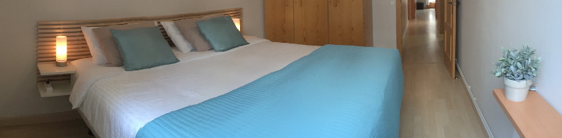 The 2 good size bedrooms are located at the back of the apartment and both have hotel quality, Flex-Dreamax mattresses to help ensure a good nights sleep. The first room has 2 x twin beds that can be combined with a topper mattress to make a superking bed. The second room has a double bed plus a desk/workstation and leads out on to the rear balcony. Both bedrooms have ample wardrobes space.