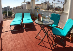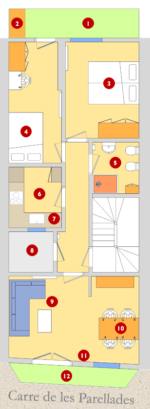 - The front south facing balcony catches the sun most of the day and looks out on to the pedestrianised street of Parellades